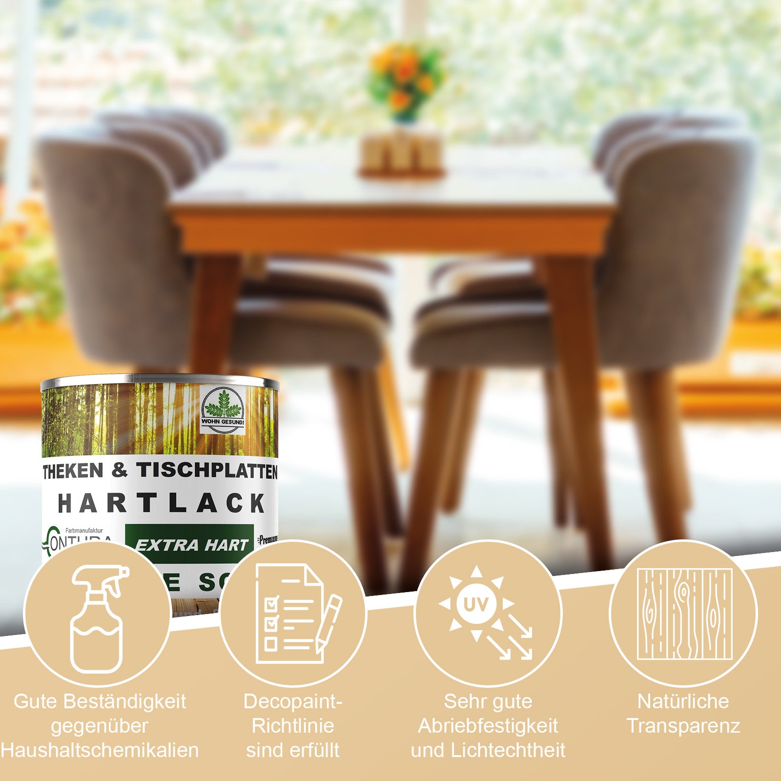 Ein hervorragendes und extrem strapazierfähiger Tischplatten- und Thekenlack für Ihr Vorhaben.  HOHER SCHUTZ!
