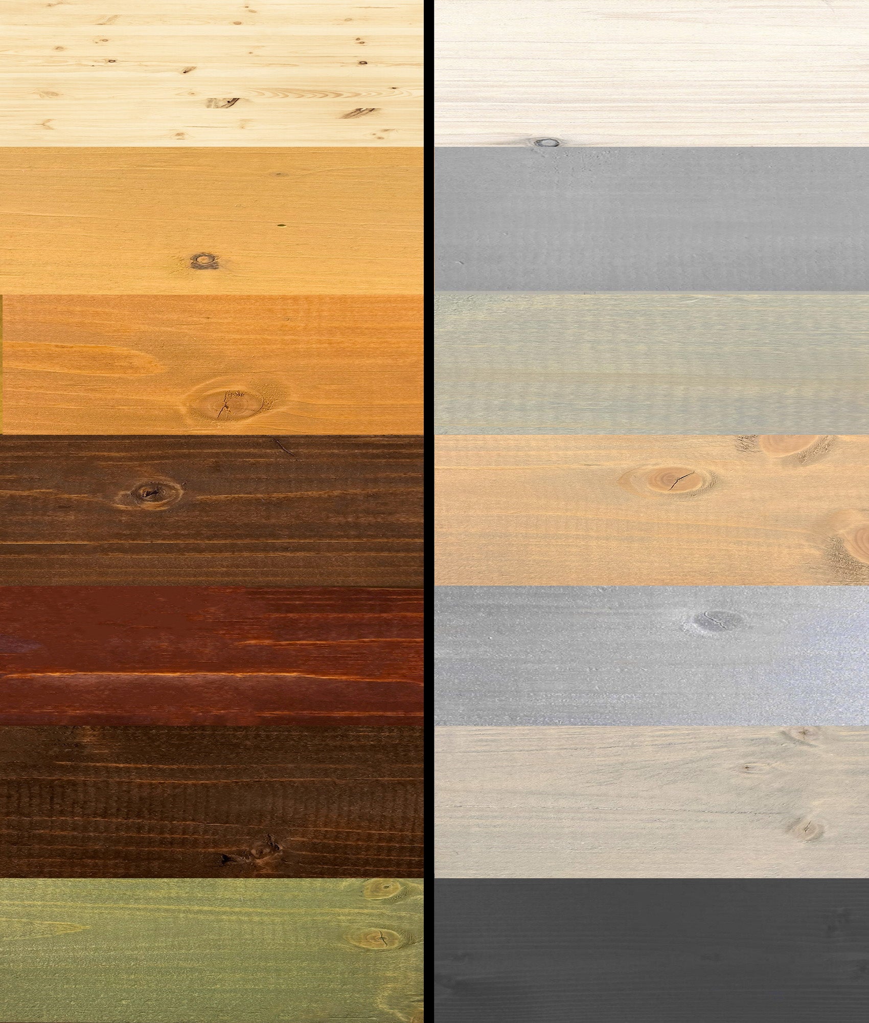 Die abgebildeten Farbmuster wurden von uns auf einem hellen, neuen, beinahe weißen Fichtenholz aufgestrichen und angefertigt. Dunklere Hölzer oder andere Holzarten, sowie Althölzer ergeben u.U. einen anderen Farbton. Ein z.B. gelber Anstrich auf dunklem Untergrund, sieht völlig anders aus, wie auf einem hellen Untergrund, auf dem wir die Musteranstriche gefertigt haben. Auch ein dünner oder satter Anstrich sowie die Anzahl der Anstriche können den abgebildeten Farbton beeinträchtigen.