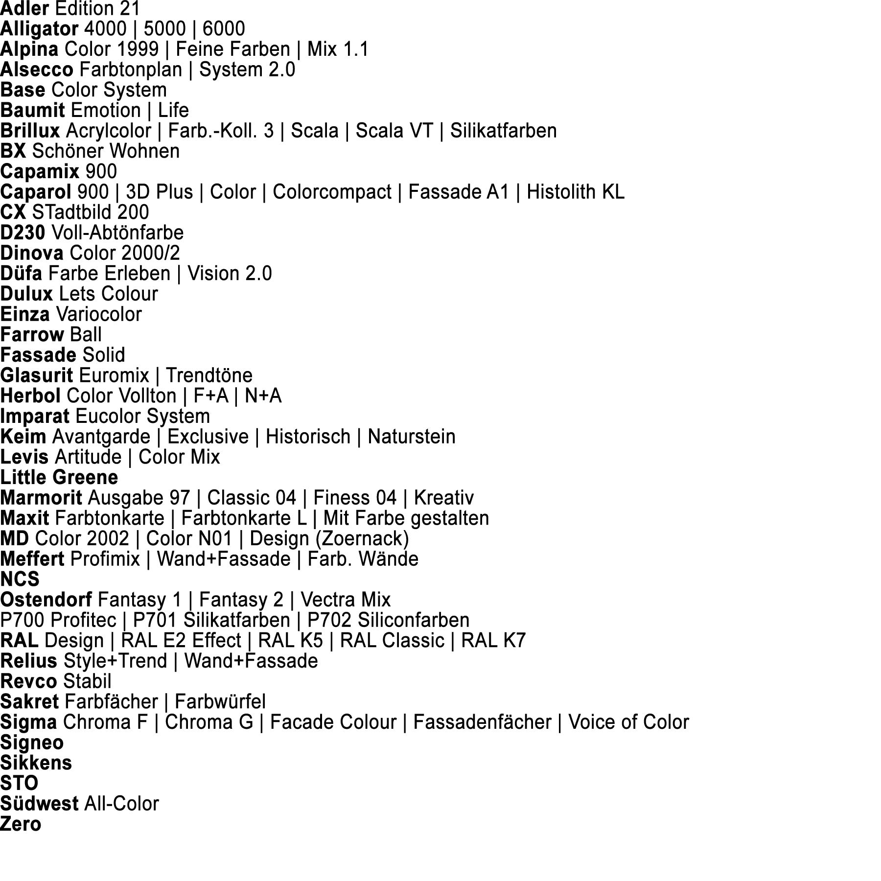 Farben folgender Farbtonfächer sind verfügbar. (Keine Spezial, Leucht, Perl oder Metallic- Farben verfügbar)