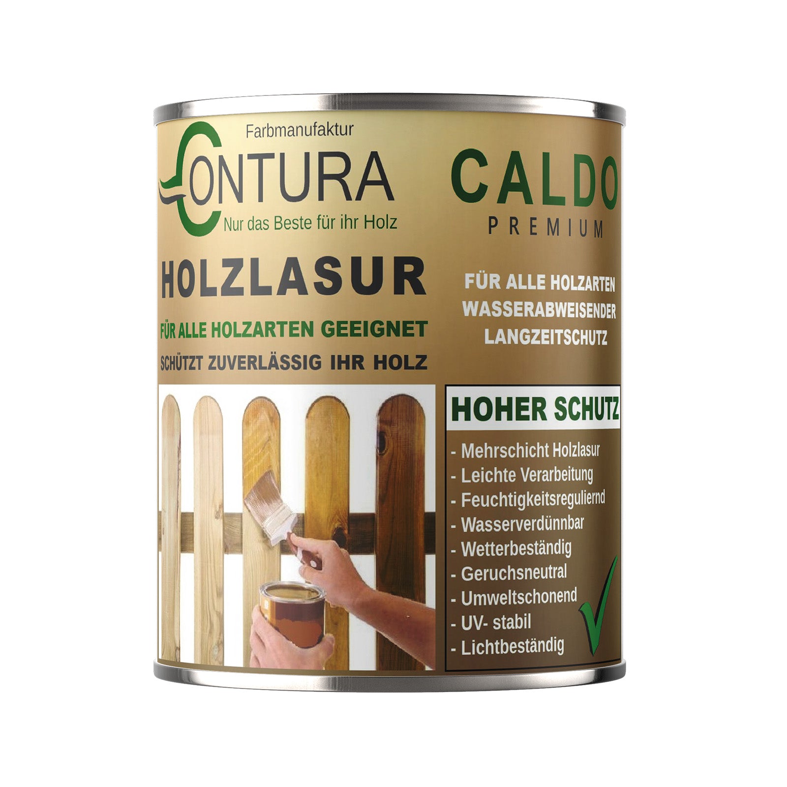 Caldo Holzlasur ist für nahezu alle Holzarten und viele maßhaltige Holzbauteile außen, wie Carports, Zäune, Balkonbrüstungen, Fensterläden, Pergolen, Garten- und Blockhäuser sowie mehr geeignet. Für hohe, wetterbeständige Anstriche geeignet. Schützt zuverlässig vor schädlichen Witterungseinflüssen.